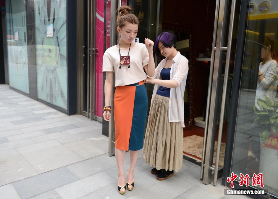 高级定制已经拥有百年的历史,由于受到皇室贵族、富商名媛等上流阶层的追捧而繁荣。而到如今,高级定制同样赢得不少市场消费群体的关注。5月3日,顾客来到长沙美女设计师李昕遥的高级定制店进行定制换装。李昕遥表示,店内的衣服定制价格从几千到过万元且无上限,高级定制风潮已逐渐席卷长沙,受到了众多消费者喜爱。图为李昕遥为该位顾客准备了三套定制服饰试穿。 杨华峰 摄