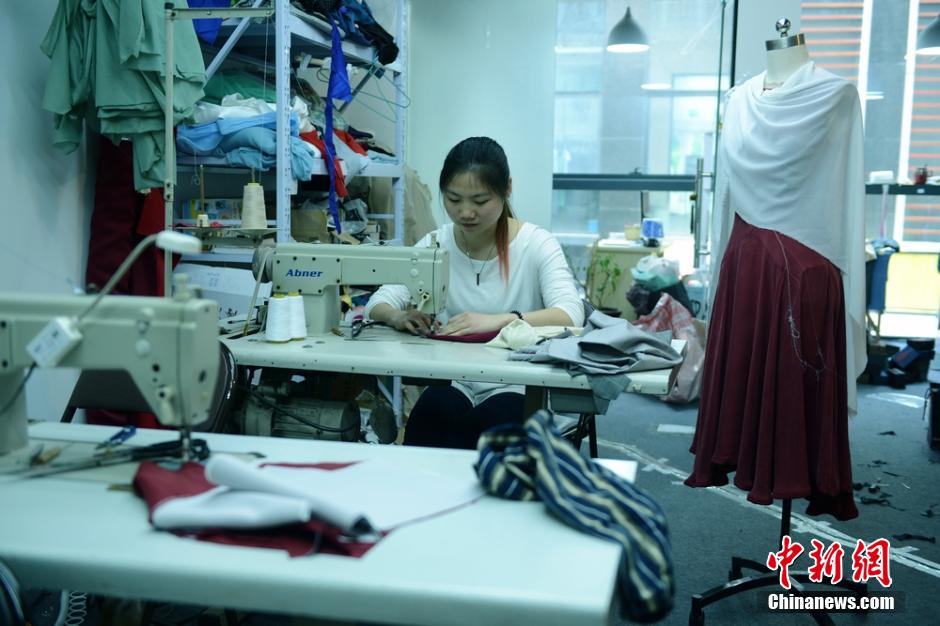 高级定制已经拥有百年的历史,由于受到皇室贵族、富商名媛等上流阶层的追捧而繁荣。而到如今,高级定制同样赢得不少市场消费群体的关注。5月3日,顾客来到长沙美女设计师李昕遥的高级定制店进行定制换装。李昕遥表示,店内的衣服定制价格从几千到过万元且无上限,高级定制风潮已逐渐席卷长沙,受到了众多消费者喜爱。图为三楼的制作间,为顾客加工服饰。 杨华峰 摄