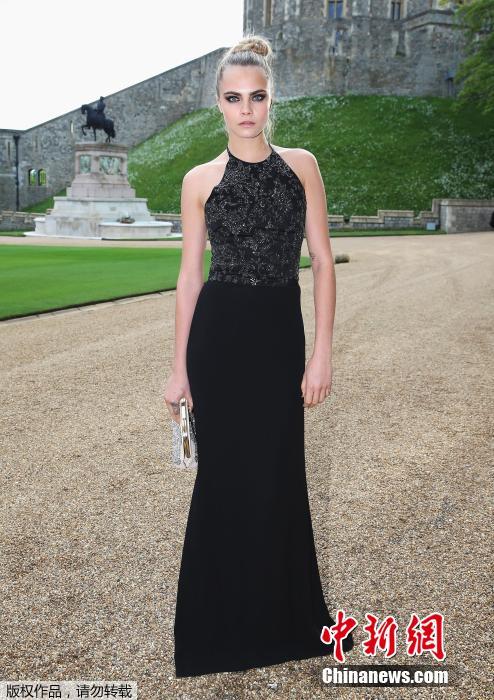 2014年5月14日讯,温莎堡,当地时间5月13日,群星亮相英国王室住所温莎堡出席慈善宴会。章子怡身穿Ralph Lauren灰色流金刺绣礼服裙带有羽毛配饰,高贵迷人。超模卡拉迪瓦伊(Cara Delevingne)、凯特莫斯争妍斗艳。赫敏艾玛沃特森(Emma Watson)高贵优雅变身轻熟女。
