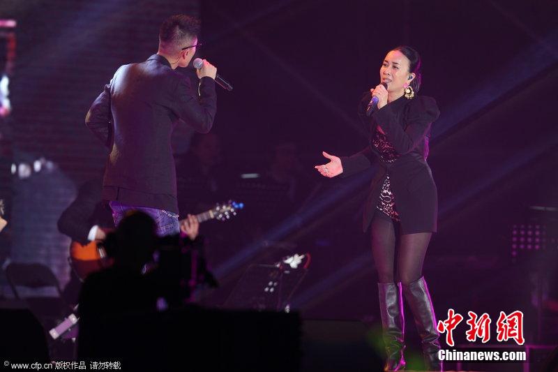 2014年5月25日讯,郑州,24日,那英“NAWORLD那世界”那英郑州演唱会在郑州国际会展中心开唱。那英身穿红色蕾丝开叉长裙性感登台,随后又换上黑丝装扮与张赫宣合唱,最后那英身穿深V黑色礼服裙戴面罩登台,妩媚性感。