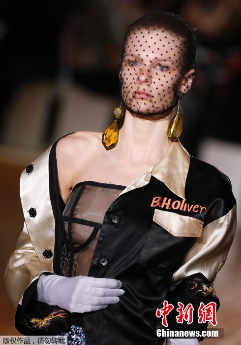 当地时间7月9日,法国巴黎时装周,模特蒙面展示2014/15秋冬高级时装。