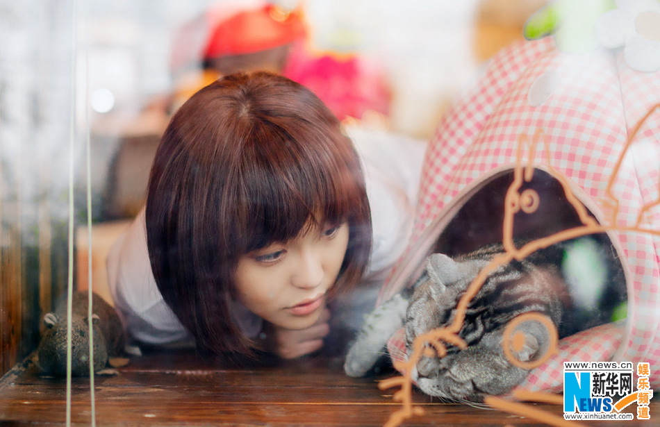 张佳宁与酣睡小猫纯真出镜 童趣写真清新神怡