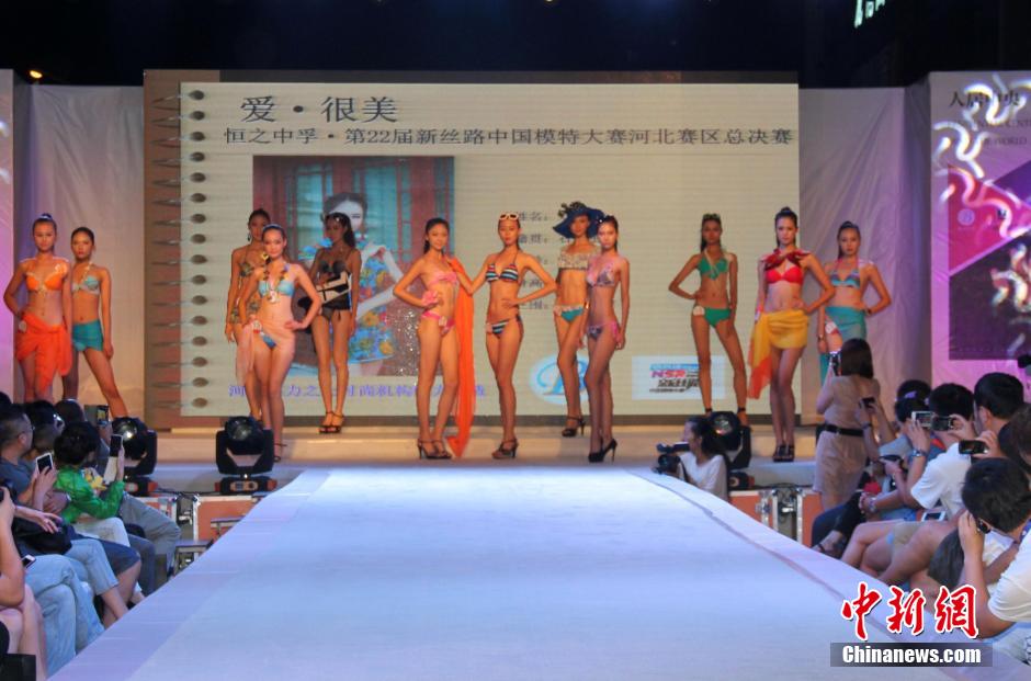 24日晚,由新丝路北京模特经纪机构、河北葆力之士时尚机构、恒之中孚(北京)投资咨询有限公司联合主办的第22届新丝路中国模特大赛河北赛区比赛在河北秦皇岛圆满落幕。佳丽们通过活力装、泳装、时装、晚装四轮比拼,最终季旭获得冠军;同时,大赛还评选出多名十佳选手和单项奖。图为图为泳装秀表演。 中新网记者 翟羽佳 摄