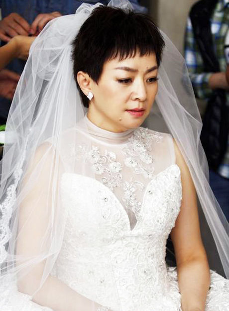 宋丹丹以婚纱造型出镜。(图片来自《幸福请你等等我》剧照)