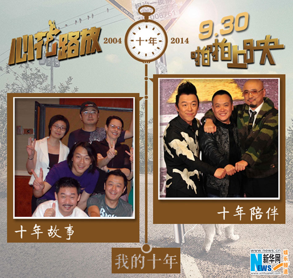 由宁浩执导,黄渤、徐峥、袁泉、郭涛、李晨、夏雨、雷佳音、沈腾、刘仪伟、熊乃瑾、陶慧、周冬雨、雍梦婷、张俪、马苏、刘美含、焦俊艳等全明星阵容加盟的电影《心花路放》将于9月30日上映。继电影主题曲《轻轻的放下》MV曝光宁浩、黄渤、徐峥三位老友十年情后,片方再度发布了一支关于《我的十年》的情感视频,展现普通人的十年情感故事,同时也曝光了导演宁浩、黄渤、徐峥等主创的独家珍贵十年前后对比照,十年感触娓娓道来温暖人心。