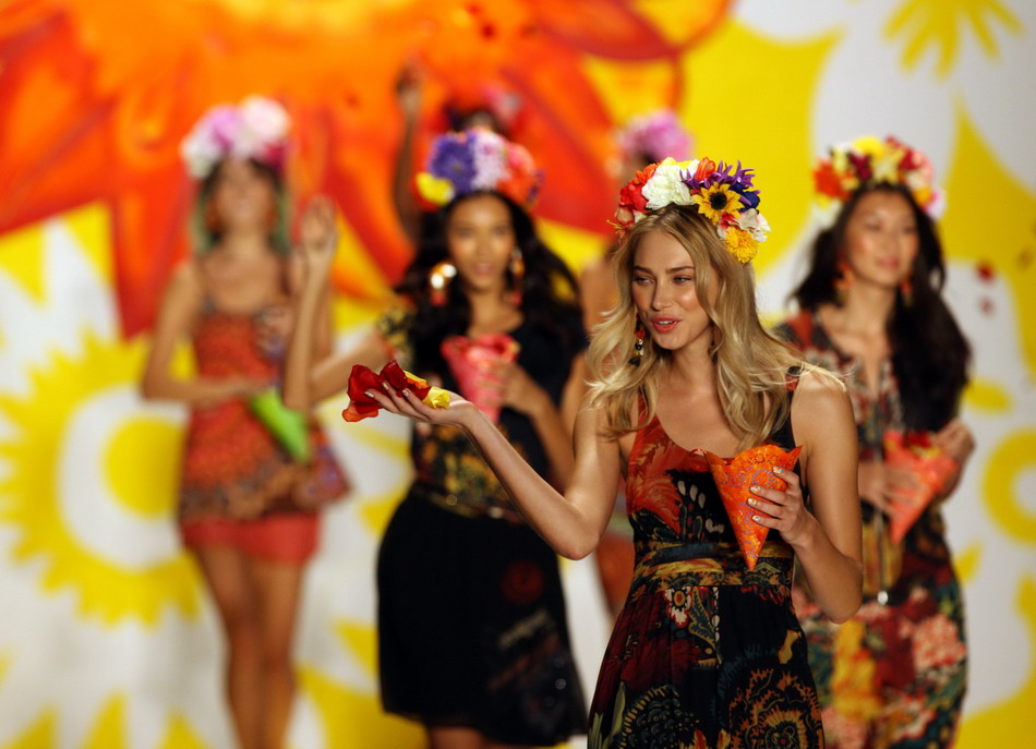 9月4日,在美国纽约林肯中心举行的纽约春夏时装周上,模特展示Desigual品牌时装。