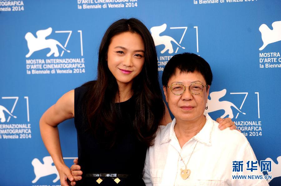 9月6日,在意大利威尼斯利多岛举行的第71届威尼斯电影节上,《黄金时代》导演许鞍华(右)、演员汤唯出席拍照式。由中国香港导演许鞍华执导的影片《黄金时代》作为本届威尼斯电影节闭幕影片将于当晚首映。 新华社记者许逆之摄