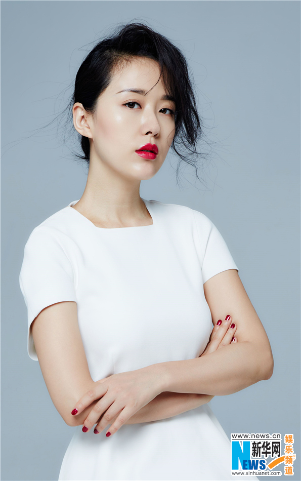 颜丹晨摩登大片 白衣红唇性感演绎都市女神风范