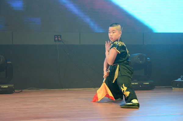 现场表演环节中,小童星李林锋一套夺人眼球的刀术耍的风生水起,赢得现场众多来宾的叫好和热烈掌声,紧接着又一套灵活多变的拳术,有板有眼有力度的出拳,让人赞不绝口,一套拳打下来给很多现场来宾观众留下了深刻印象。