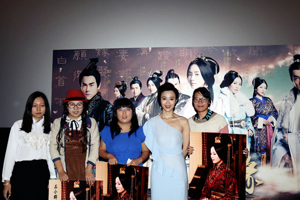 随点映进行的如火如荼,石小群戏中的华服装扮和复古妆容也引来在场影迷议论,纷纷大呼“太华丽、太惊艳”亦或“根本看不够”。在这场御姐暖男当道的年代,以八福晋、昭阳公主为例的荧屏坏女人显然大受观众网友的热力追捧,往往饰演这些角色的女演员却在生活中显得格外温婉。待石小群走上台介绍饰演的角色时才让人恍惚,原来昭阳公主霸气未减:“这次《风中奇缘》我应对的敌人还是刘诗诗,但公主我真的不忍心,恳请下部戏不要再害她了!”