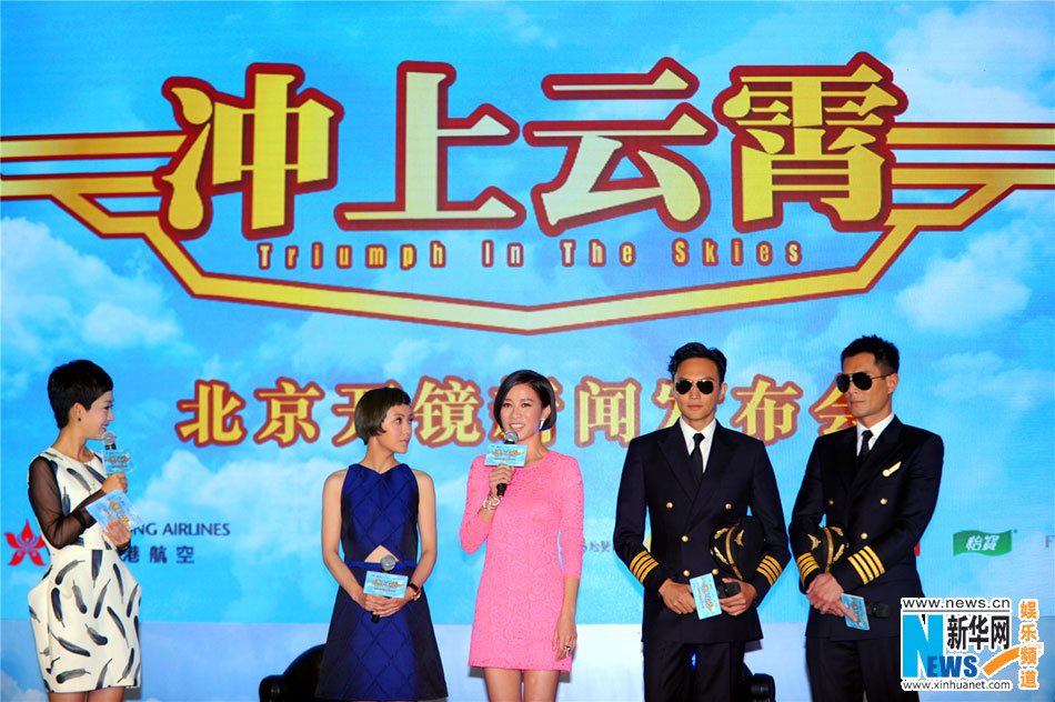 在发布会现场,佘诗曼和郭采洁二位女神的人气完全不输二位男神,四人在台上频繁互动,笑声不断。佘诗曼和郭采洁纷纷吐露心声,讲述拍摄中的有趣故事。佘诗曼更不加掩饰的赞誉古天乐,声称可以在他身上学到很多东西,“这是我与古天乐的第一次大银幕合作,能够与他演戏很开心,古天乐演戏很有经验,和古天乐一起非常浪漫。曾经当空姐是我的梦想,后来因为演戏而放弃,如今借电影版《冲上云霄》让我圆梦成真!”郭采洁也一同回忆起在欧洲片场的故事:“欧洲是一个非常浪漫的地方,我在影片里的角色是一位非常率真的女孩,所以整个拍摄是一个非常享受的过程,现在非常怀念那时的欢乐时光,电影版《冲上云霄》剩余部分将在北京拍摄,相信会更加有趣精彩。”