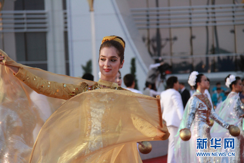 身着节日盛装的土库曼斯坦美女在跳舞 记者 卢敬利摄