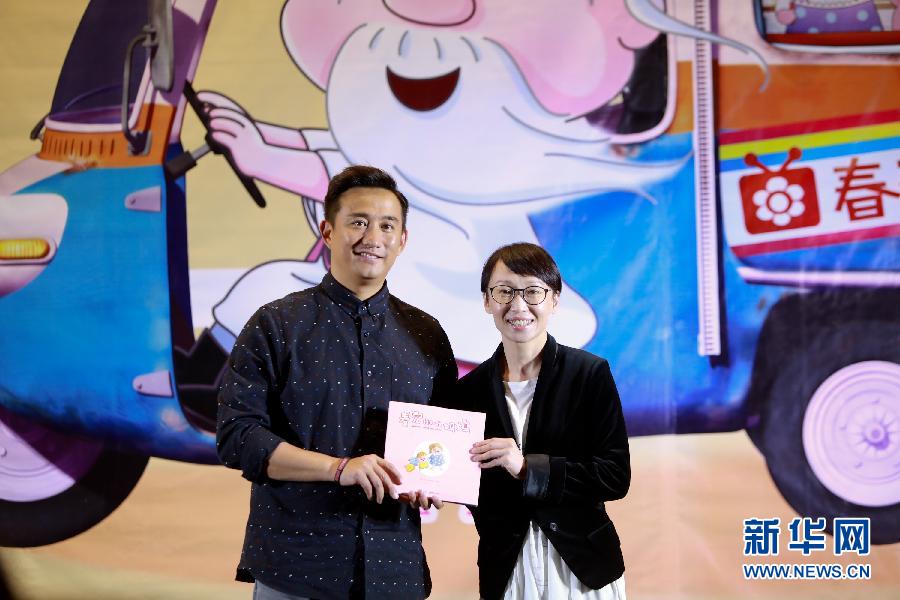 9月23日,黄磊(左)在动漫电影《麦兜我和我妈妈》首映礼上与麦家碧合影。当日,第五部麦兜系列动漫电影《麦兜我和我妈妈》在北京举办“全民麦萌”首映礼,电影美术总监麦家碧和演员黄磊、黄多多父女出席。影片将于10月1日起在全国上映。新华社记者 潘思危 摄