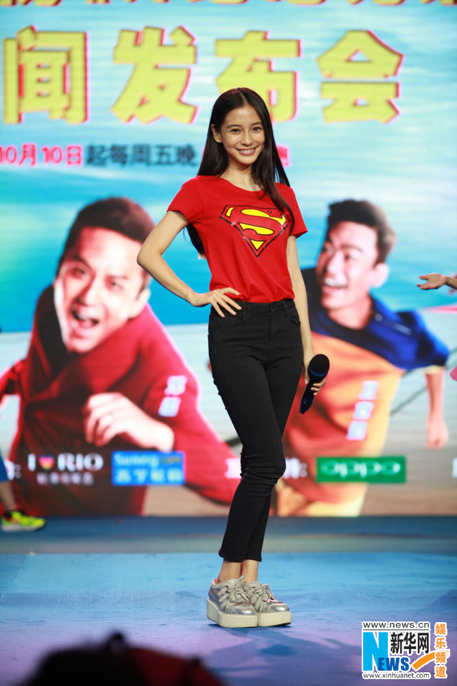 Angelababy变女超人 邓超光脚玩跳绳"歇斯底里"