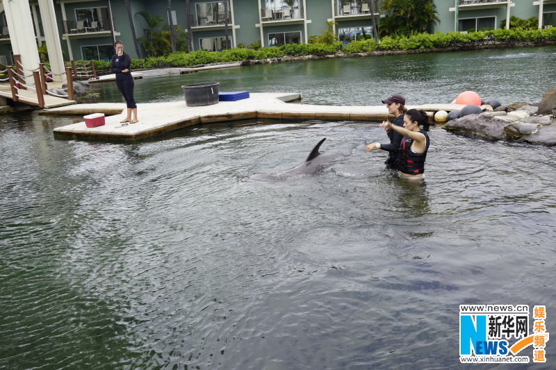 章子怡素颜与海豚嘟嘴玩亲亲 亲密嬉水俏皮可爱