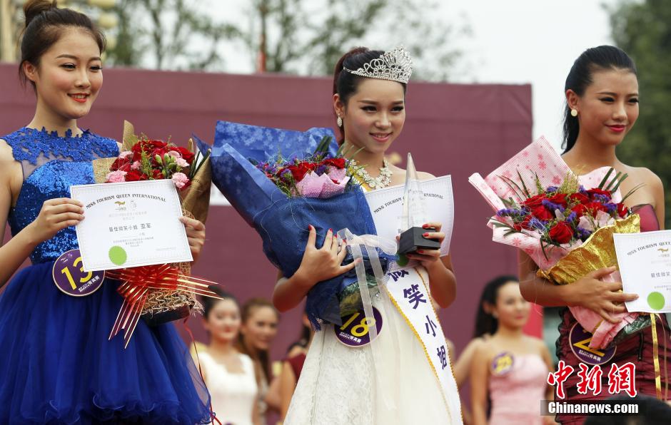 9月27日,正在湖北嘉鱼举行的2014国际旅游小姐菁英赛进行最佳微笑奖小姐单项奖评选。来自湖北的郭李平获得最佳微笑奖小姐冠军、来自河北的常悦和任杰分别获得获得亚军和季军。中新社发 钱兴强 摄