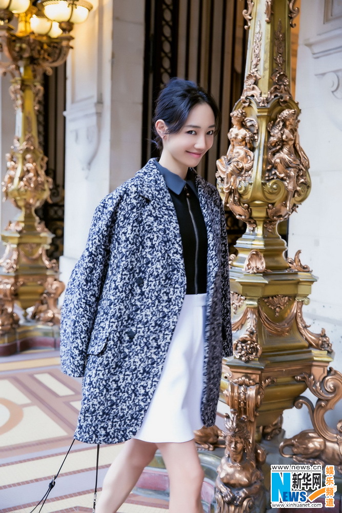 白百何亮相巴黎时装周 黑白灰三色系演绎大气经典