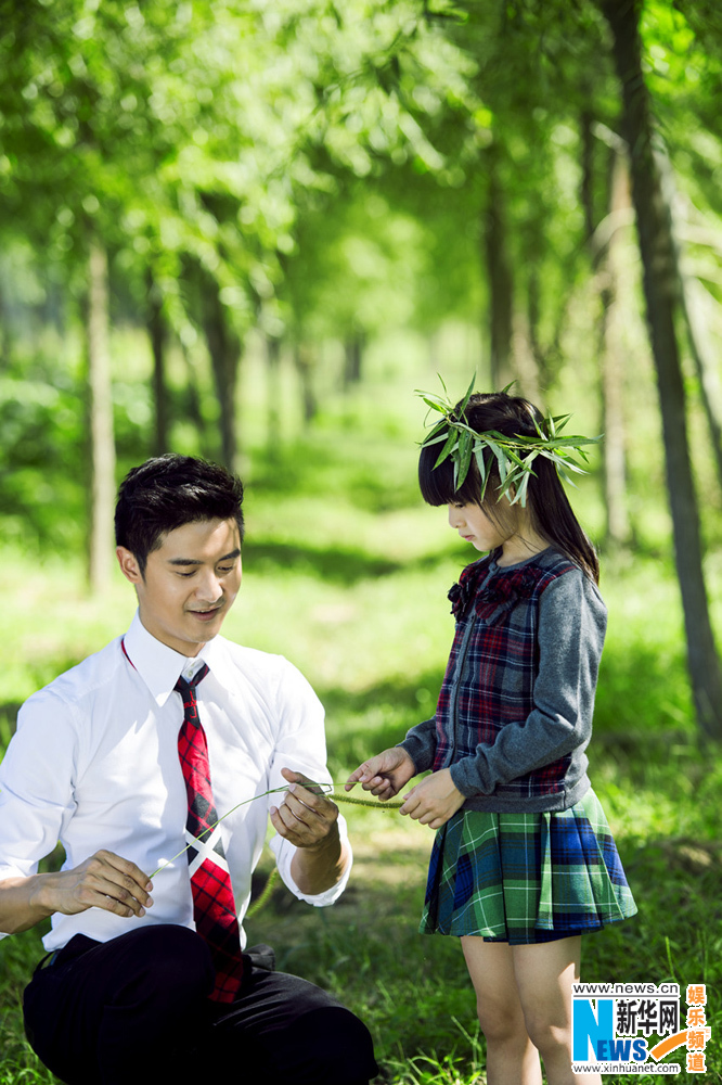 田亮携女拍英伦风秋日写真 森碟嘟嘴卖萌头戴花环