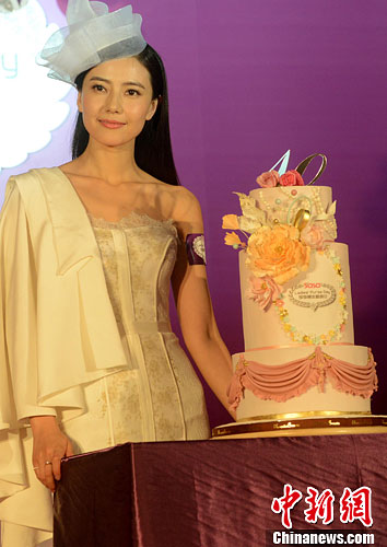 10月9日,内地影星高圆圆在香港出席香港赛马会《莎莎妇女银袋日》记者会,担任形象大使为11月9日举行的《莎莎妇女银袋日》赛马日活动宣传。 中新社发 邓庆乐 摄