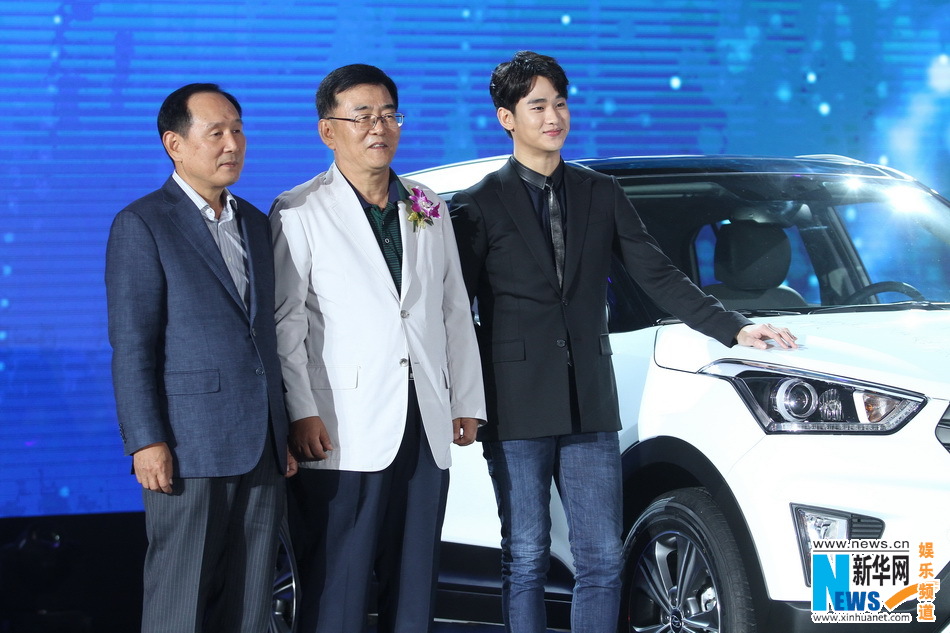 金秀贤卷发小偏分造型亮相 代言活动心意十足