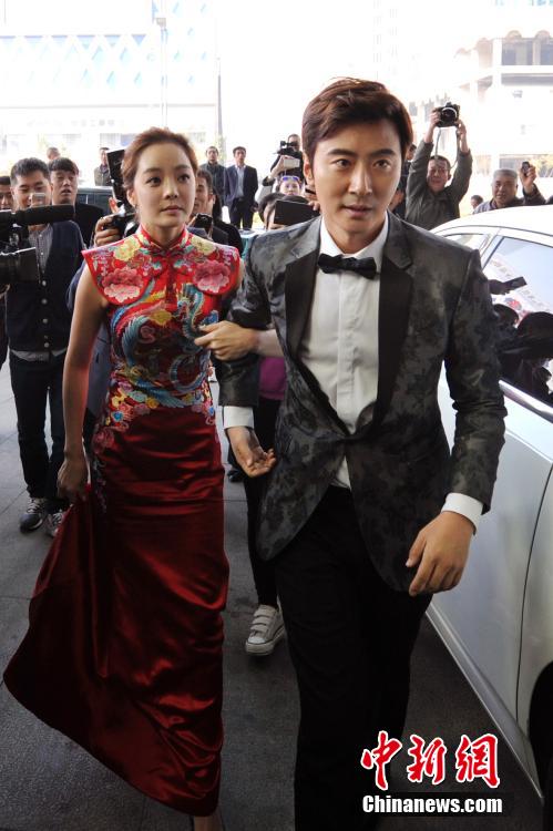10月14日,山西太原,韩国女星蔡琳身着中式传统龙凤旗袍与内地男演员高梓淇举办婚礼,婚礼仅邀请了家人和少数朋友,但还是吸引了众多影迷前来围观。韩国女星蔡琳与高梓淇2014年3月高调公开恋情,两人在拍摄《李家大院》时相识。2011年,高梓淇参演琼瑶剧《新还珠格格》饰演箫剑,为大众所熟知。中新社发 韦亮 摄