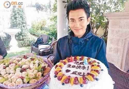 刘恺威昨天40岁生日,获送上大蛋糕和鲜花。