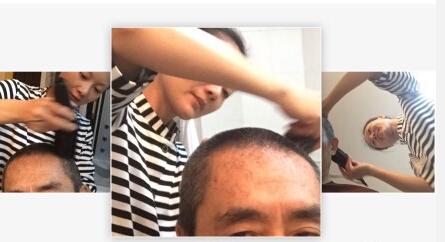 陈婷为张艺谋理发。