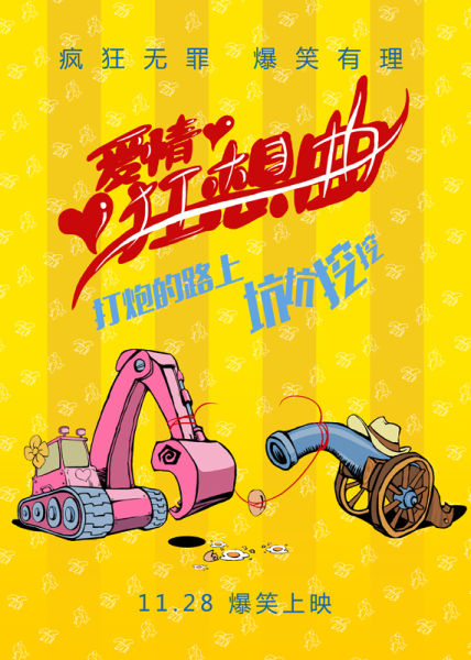 疯狂爱情喜剧《爱情狂想曲》首次曝光的挖掘机版概念海报充满了萌态喜感的气质,整张海报在色彩的运用上大胆养眼,以明亮的鲜黄为底色,插着小花的粉红挖掘机与带着礼帽的蓝色大炮,代替了影片的两位男女主演,象征爱情的月老红线以心形将挖掘机与大炮牵到一起,而地上的碎蛋与红线中捆着的鸡蛋,配上海报中的广告语:打炮的路上坑坑挖挖,带给了网友无限的遐想空间。男人在追求女人的道路上总是充满艰难险阻,萌版大炮追求挖掘机的疯狂恋爱之路也势必蛋碎不止。