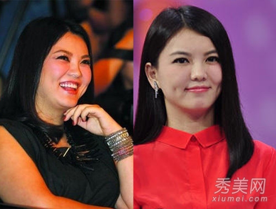 李湘曾经怀孕发福,可是生完孩子后一直没收回来,如今女儿都这么大了,李湘脸型才稍微瘦了一点,左图的圆脸大婶真的是李湘吗?