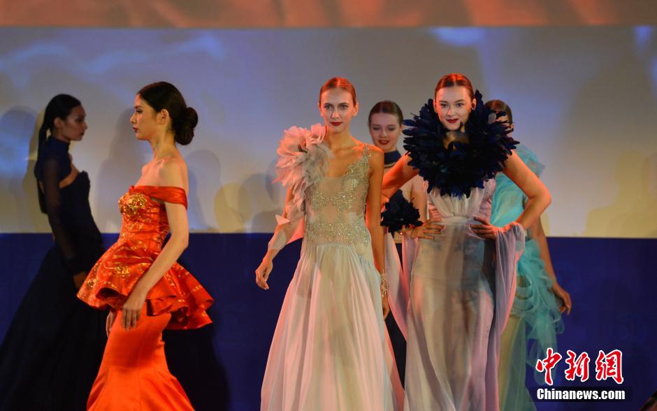 10月23日晚,第15届中国西部国际博览会举行招待晚宴,中法两国同台演绎时装秀,向来自世界各国前来参会的政商界人士表示欢迎。此届西博会由法国担任主宾国。中新社发 张浪 摄
