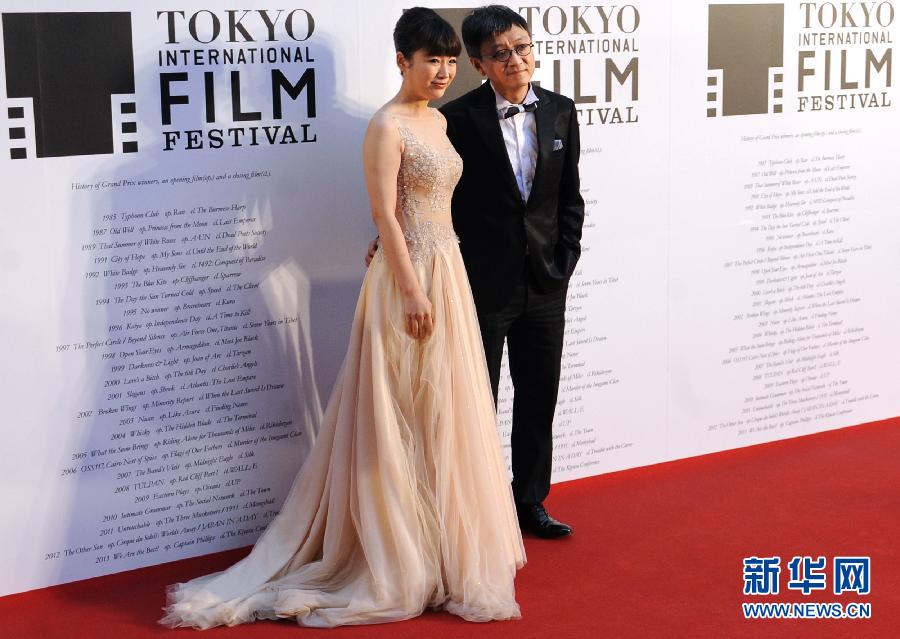 10月23日,中国导演俞白眉(右)和演员代乐乐出席东京电影节开幕式。当日,第27届东京电影节拉开帷幕,本届电影节将持续到10月31日。 新华社发