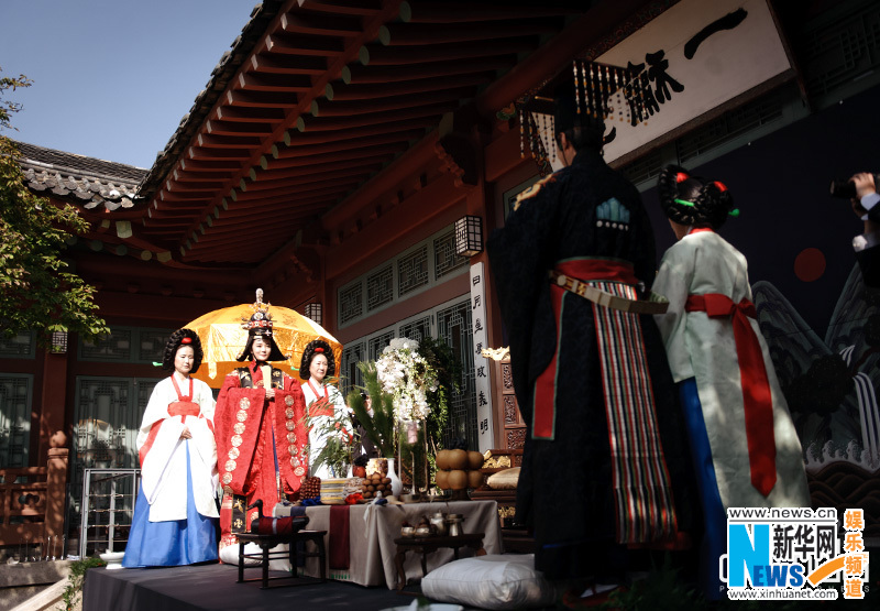 图:高梓淇蔡琳首尔办韩式婚礼 宫廷风格美如韩剧