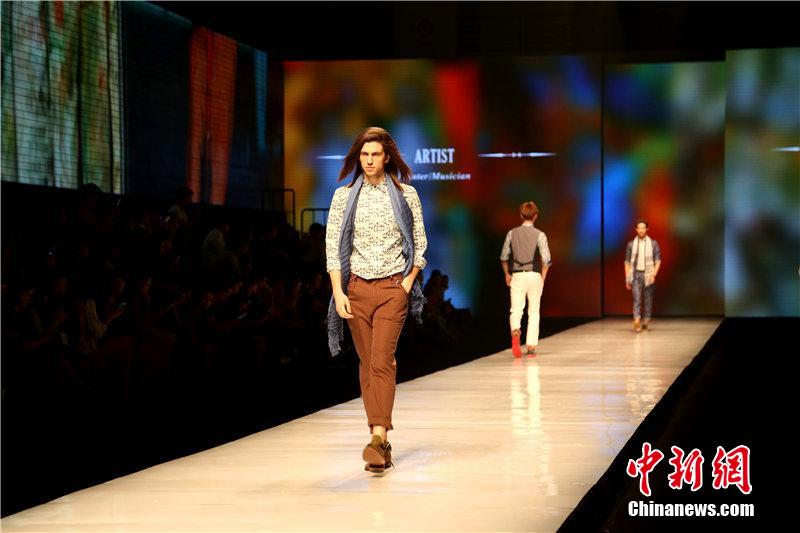 10月26日晚,中英两国大学生原创设计服装作品亮相2014宁波国际时装周,近百套异域民族风原创设计服装备受追捧。图为作品发布。 林波 摄