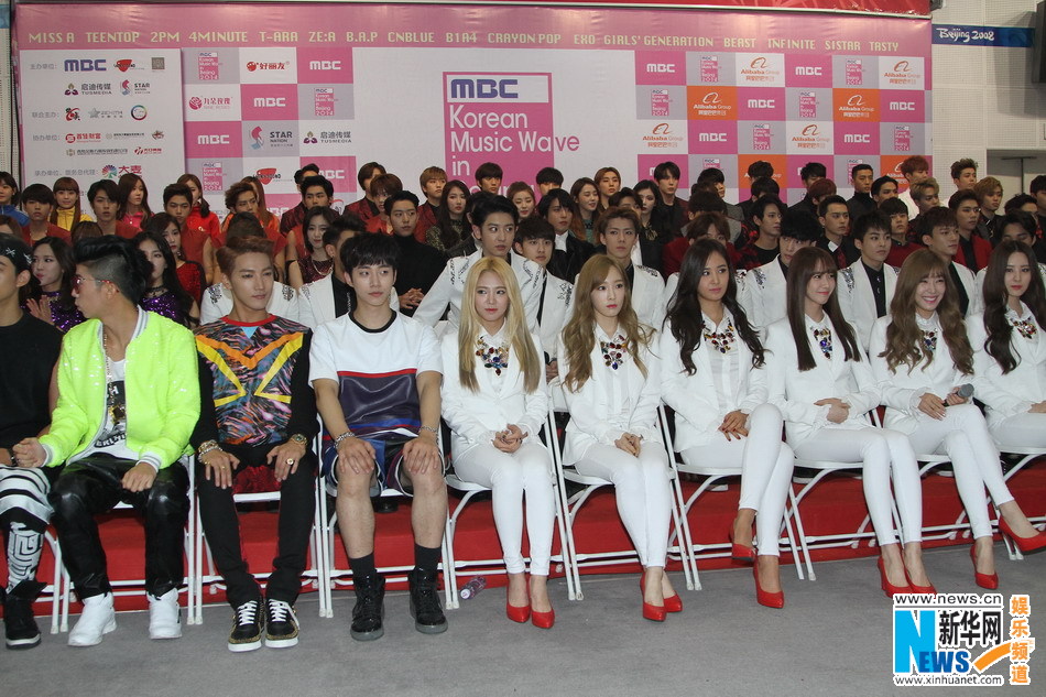 Korean Music Wave (韩国音乐波流行盛典演唱会)于10月25日晚在北京鸟巢国家体育场盛大开唱。当日下午四点,16组艺人齐聚一堂出席新闻发布会, EXO、少女时代、2PM、BEAST、CNBLUE、INFINITE、SISTAR、B.A.P、TEENTOP、missA、4minute、CrayonPop、T-ara、B1A4、ZE:A、Tasty,近百名一线K-POP偶像同时现身,场面壮观,豪华程度让主办单位忍不住用“宇宙级”三字形容。