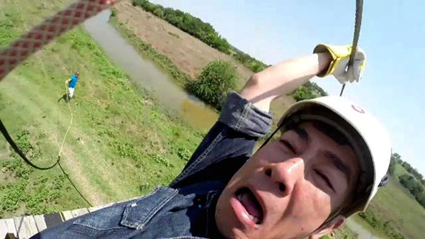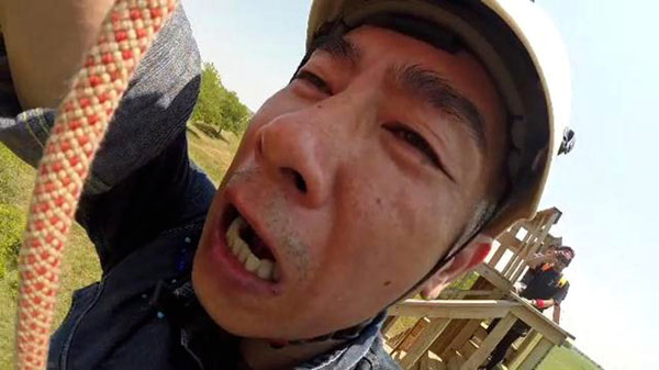 高空滑索山鸡哥吓哭 手抖腿软表情搞笑