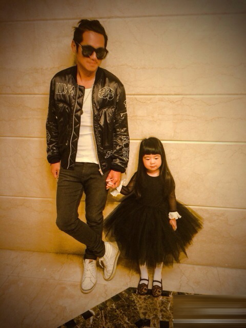 10月17日早上,曹格在微博上传女儿Grace姐姐的萌照。照片中,姐姐拉着爸爸曹格的手靠墙站着,低头呆呆看着地面。曹格微博说:“上学去!今天特别‘开心日’,所以穿特别美丽!哈哈哈哈,早安,冠军们!!!”