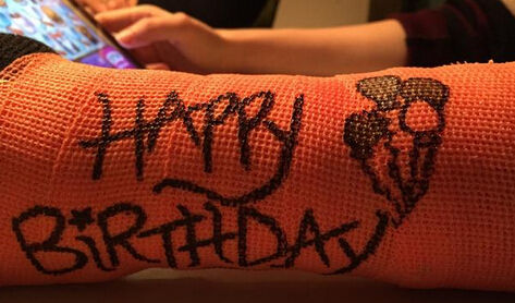 生日当天,作为老公的李承铉也为妻子戚薇准备了一份特殊的惊喜,她趁着戚薇睡着,在她手臂的石膏上写下了“生日快乐”,李承铉在微博中写道:“她还在睡,不要吵醒她…(中国时间)生日快乐!! HAPPY BIRTHDAY TO THE WOMAN OF MY LIFE!!(我生命中的女人生日快乐)@戚薇 ~~ ”
