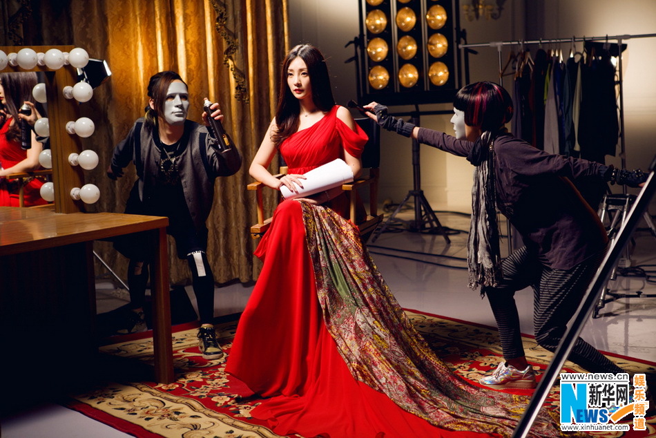 柳岩雪肤红裙拍广告飘逸优雅 神秘冷艳显女王霸气