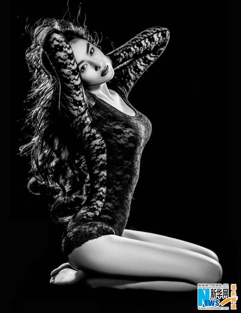 张馨予黑色蕾丝写真勾勒完全曲线 长发妩媚秀长腿