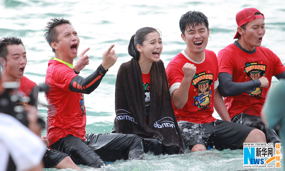 图:Angelababy划纸船下水 林更新头裹毛巾笑翻场