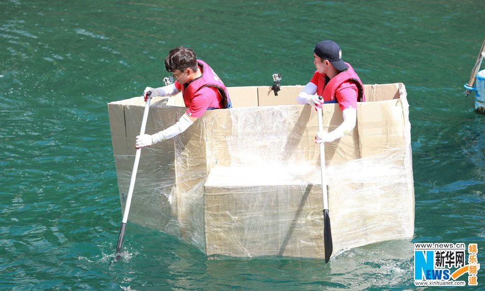 图:Angelababy划纸船下水 林更新头裹毛巾笑翻场