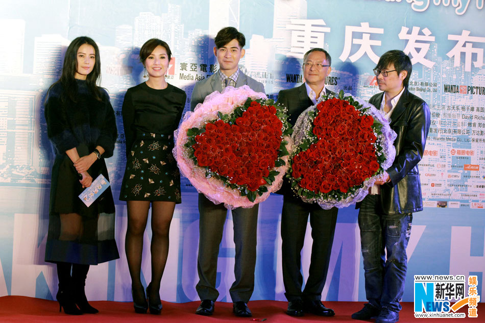 杨千嬅、高圆圆、周渝民刚一出场,就体验了重庆人民的“热辣”欢迎。受到现场热烈气氛的感染,几位主演主动学起了重庆话——单身男女、霸道、吃皮(厉害、了不起)、雄起,几轮模仿下来,演员们均展现出强大的语言天赋,让在场观众惊呼足以乱真。几位演员更贴心地用独具重庆特色的美食比喻自己的角色,拉近和重庆人的距离。高圆圆表示在片中饰演的“软妹子”程子欣更像“酸辣粉”,简单明了,酸酸辣辣就是大家直接感受到的味道。而杨千嬅则认为“杨鸯鸯”像重庆的麻辣火锅,果敢火爆,和自己的感觉也很像。饰演“水星男”的周渝民则觉得“老麻抄手”更像爱情的感觉,麻辣的味道回味悠长,就像是对爱情的追求意境深远。