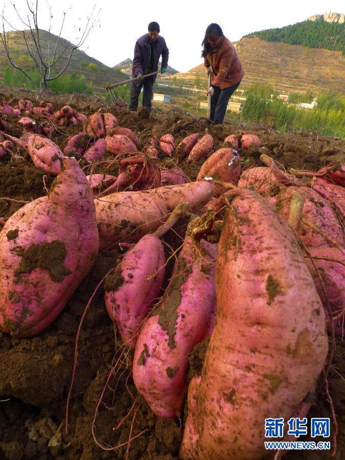11月7日,山东枣庄市山亭区夏岭村农民在田间抢收地瓜。当日是农历二十四节气中的立冬,各地农民抢抓时机及时收获农作物,田间一派繁忙景象。 新华社发(刘明祥 摄)
