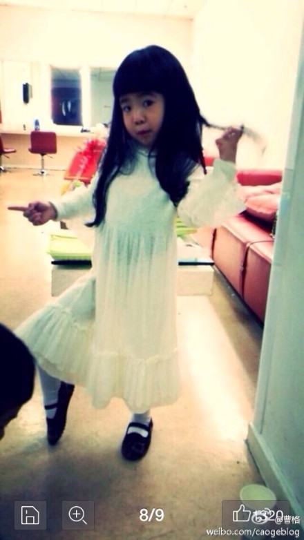 原标题:曹格女儿秀妖娆舞姿 穿长裙轻抚长发搞怪(图)