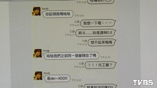 中新网11月17日电 据台湾TVBS新闻网报道,日前台湾有网友爆料,天才老妈因为账号被儿子封锁,竟然换上了美女的大头贴,还改名字叫Sandy,主动找儿子聊天,说“你还记得我吗?”、“我们之前是同一个营队,你不记得了吗?”当儿子想破头还是猜不出来,妈妈才揭露身份,说“我是你老妈,居然封锁我,你完蛋了”让儿子看了真的是哭笑不得。