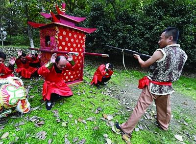 大白天公园有人“抢亲” 原是大学生自拍微电影