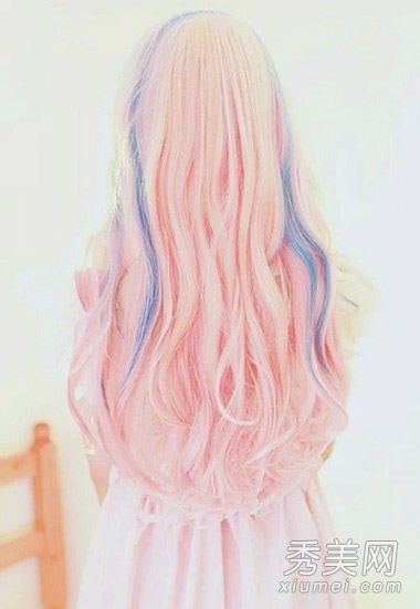 亮色的粉色系,这样的染发你怎能不爱!一点蓝色的挑染乖巧中多一点怪诞的感觉,回头率绝对2oo%的发型!