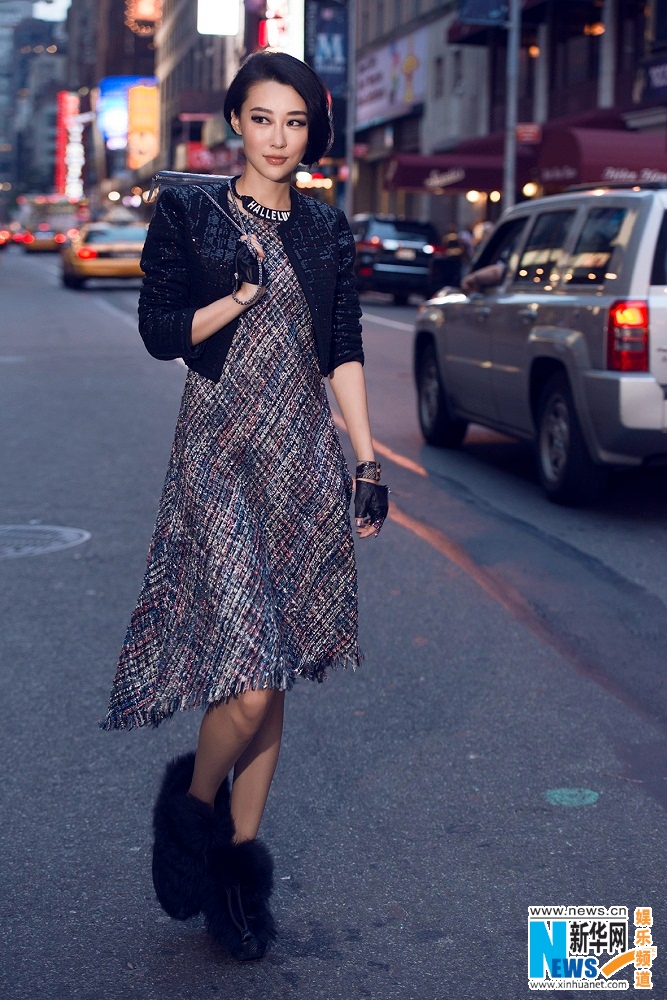 近日,女星马梓涵曝光了一组时尚街拍大片,片中,马梓涵身着设计感十足的亮色长裙搭配黑色修身外套,面带自信微笑漫步黄昏下的纽约百老汇大街,玩转异国情调。