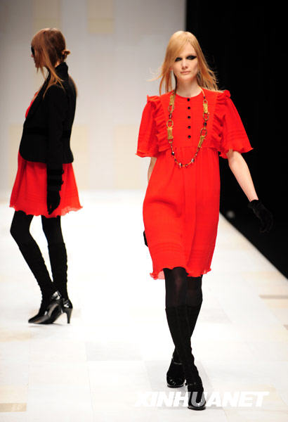 3月26日,模特在日本东京举行的时装周上展示设计师芦田多恵的作品。新华社记者 季春鹏 摄