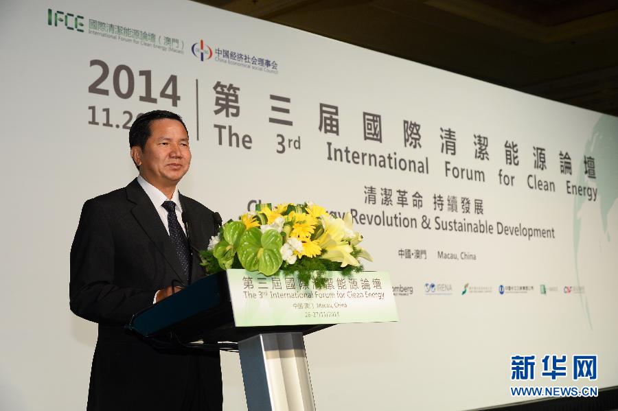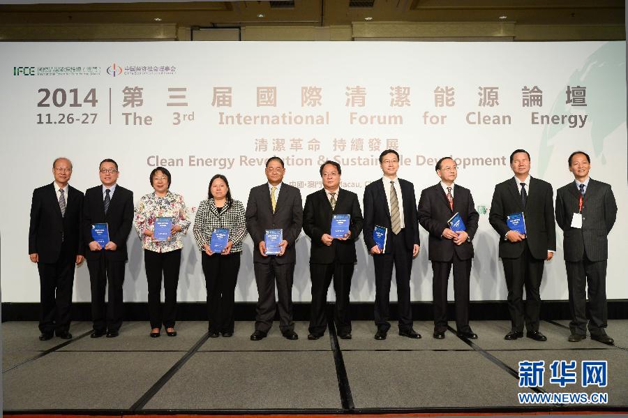 11月26日,澳门特区社会文化司司长张裕宣布第三届国际清洁能源论坛(澳门)开幕。当日,第三届国际清洁能源论坛开幕式在澳门举行,同场举行《清洁能源蓝皮书——国际清洁能源发展报告(2014)》首发仪式。新华社记者张金加摄